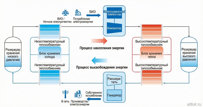 Накопление энергии с использованием диоксида углерода представляет собой технологию длительного физического хранения энергии в сжатом газе по замкнутому циклу, где CO2 выступает в качестве рабочего тела. К ключевым преимуществам системы эксперты относят высокую эффективность, длительный срок службы, безопасность, гибкость в выборе площадки для размещения и высокую адаптивность к условиям окружающей среды. Подобные комплексы способны обеспечивать глубокую интеграцию с объектами генерации на основе ВИЭ, использоваться для регулирования пиковых нагрузок и частоты в электрических сетях, а также внедряться в промышленные энергетические системы.